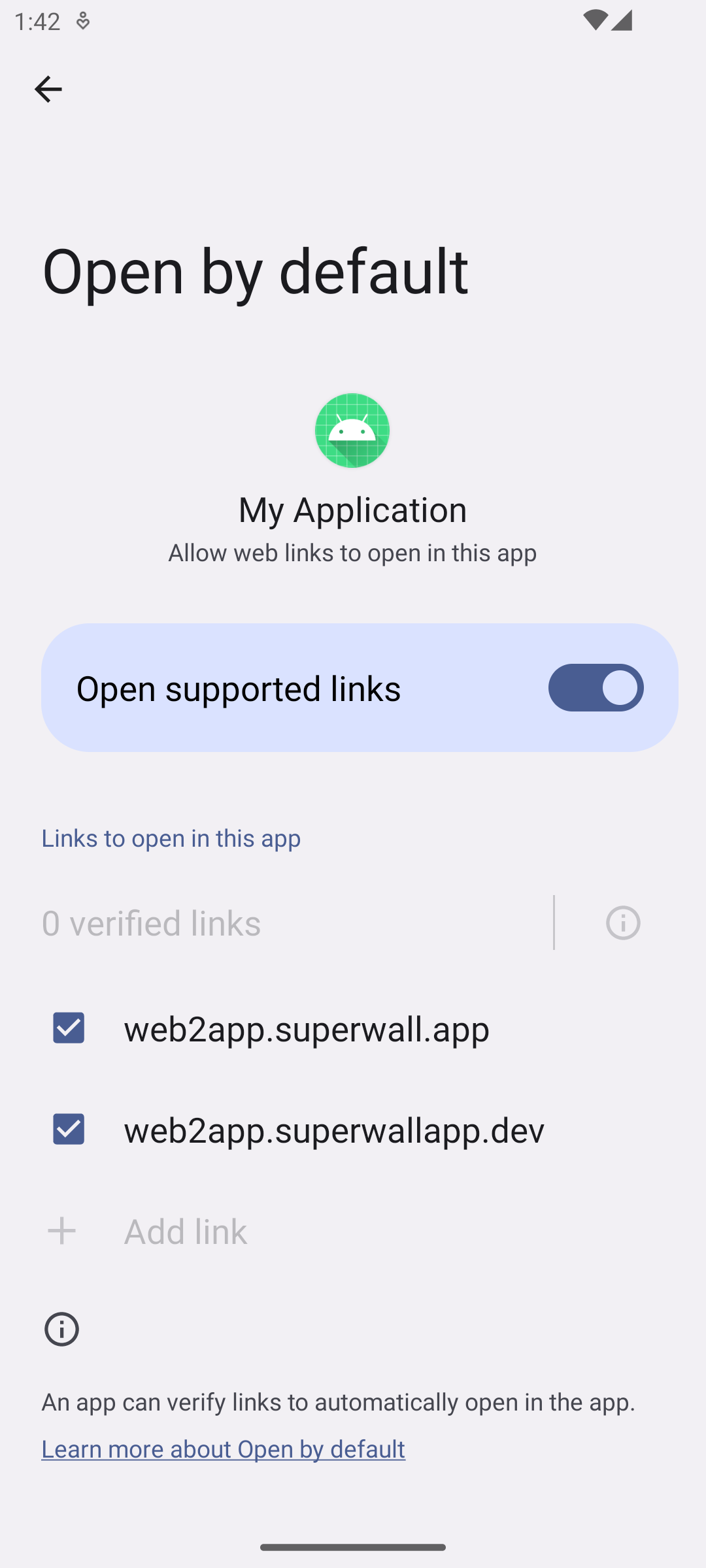 Under there, the Open supported links should be enabled. Tap Add Links button and selected the available links.
