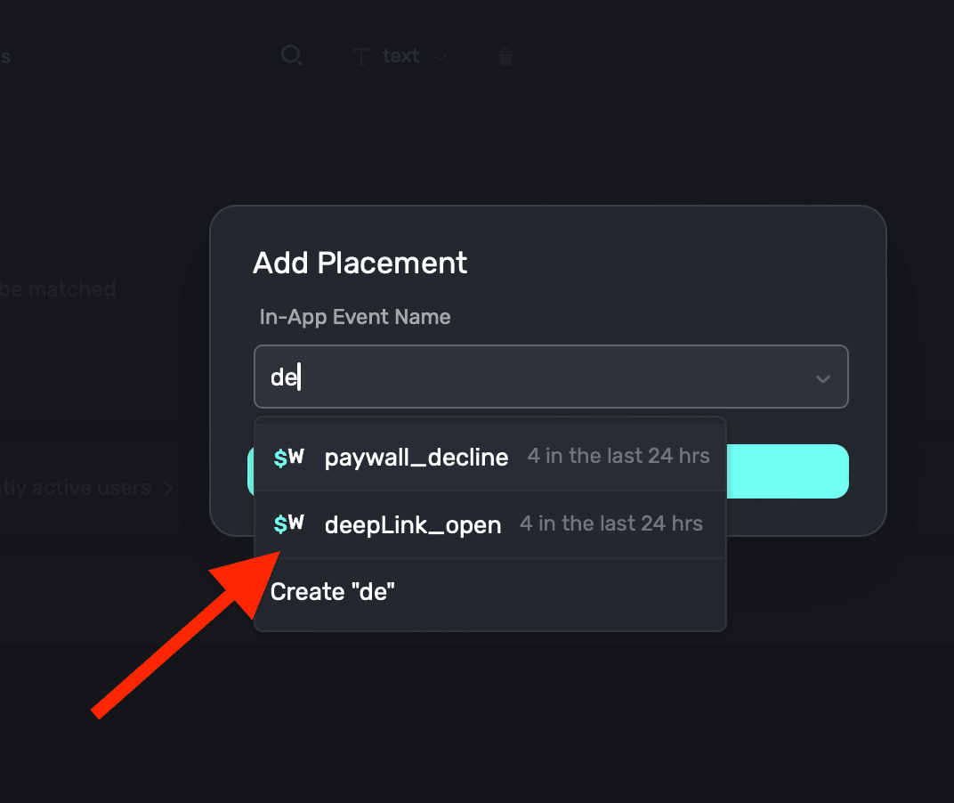 In your new campaign, add a new placement that matches the name of your custom action you added in step one. For us, that's showIconPaywall: