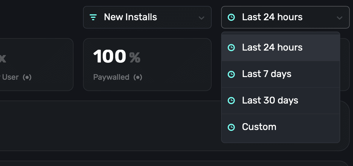 - Toggles: Switch between new install or all users, and apply different time filters between them.