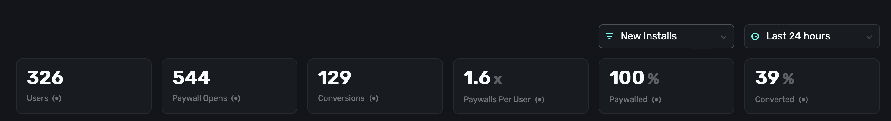 | Paywalls Per User | The percentage of paywalls shown per user. Remember, each user may see more than one paywall per session. |