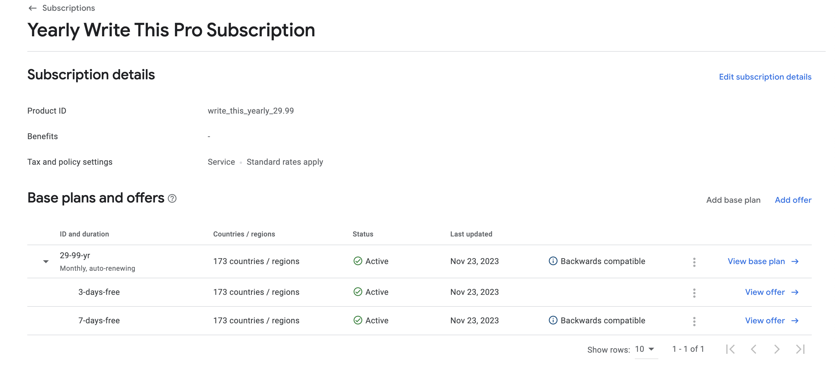 Google play allows you to create multiple base plans and multiple offers for each base plan. When using Superwall, you can either specify a specific offer or let Superwall choose the best offer for the user.