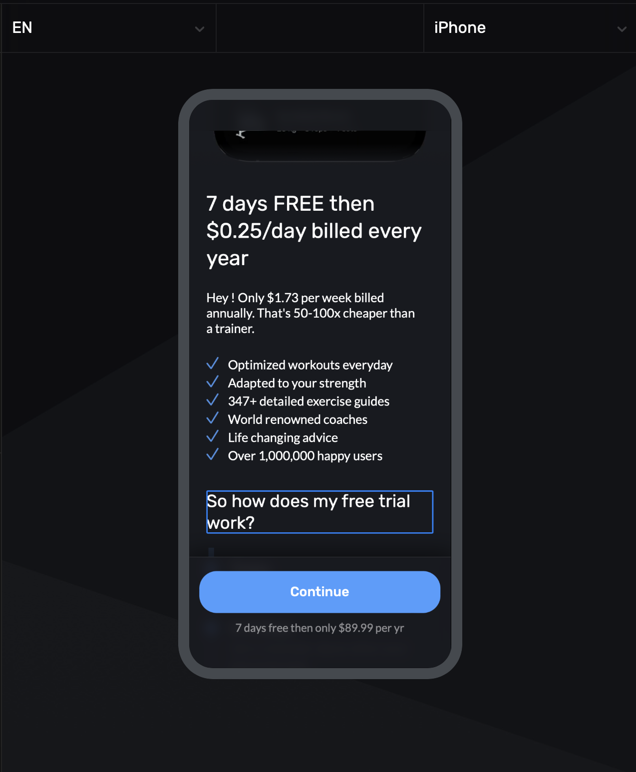 The top bar allows you to change the localization of the paywall and the device that it's displayed on: